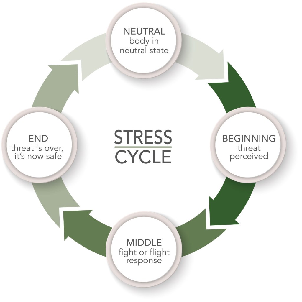 Remember earlier when I talked about the physiological response our body goes through during stress? That’s the start of the Stress Cycle, popularized by authors and psychologists Amelia Nagoski and Emily Nagoski in their book titled “Burnout: The Secret to Unlocking the Stress Cycle”. The stress cycle refers to the body’s natural response to stress and how it reacts when faced with challenging or threatening situations.